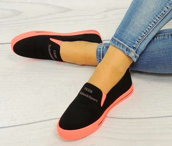 Black and Pink Slip-on Sneakers Gained popularity due to the spread of emo subcultures, but later this color combination was liked by many fashionistas. Now black and pink slip-on sneakers are actively used by the general public.