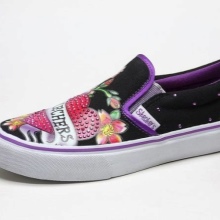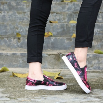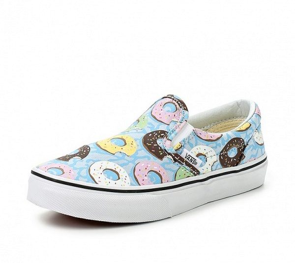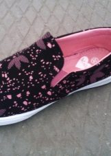In addition, slip-ons for girls can have a print (floral, geometric, polka-dot, stripe) or even a drawing in the form of images of favorite fairy-tale and cartoon characters. Colorful models look unusual and fun.