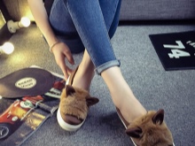 Models also differ in decor. In addition to simple concise patterns, girlish shoes are decorated with rhinestones, sequins, decorative embroidery, even to imitate any animal - to have ears and eyes.