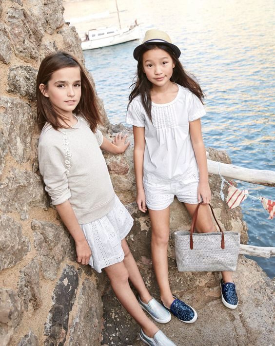 Girls may well wear slip-ons with skirts, dresses and sundresses (but clothes should not be too smart). In the summer this is a great addition to shorts and light suits. Complement the image of a miniature girl's backpack.