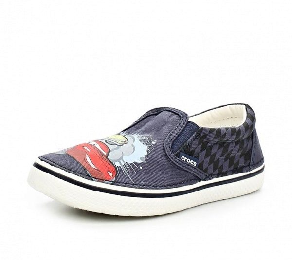 For some time, the company began to produce slipons Crocs. The top of children's products is made of textiles, and the sole is made of corporate cross-light (polymer patented by this trademark). From the same polymer material made a special insole with the effect of light massage. Kroslayt makes children's shoes waterproof, weightless. It is hypoallergenic, comfortably fits the leg and protects the skin from unpleasant odors. The children's line of slip-ons Crocs is presented in a large color variety, especially for models for young fashionistas. These are monochrome (various shades of pink and red), colorful and printed products. Many models adorn fairy characters, for example, fairies. Girl's slip-on shoes are also decorated with sequins, embroidery, and decorative stitching.