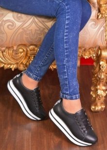 Slip-ons with laces are essentially sneakers with thick soles (this can be a platform or a wedge). However, this shoe cannot be considered an exact analogue of classic sneakers, since it has its own characteristics. The laces, in contrast to the shoe, here perform a rather decorative function and do not carry significant functional load.