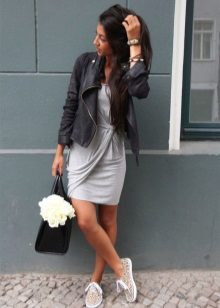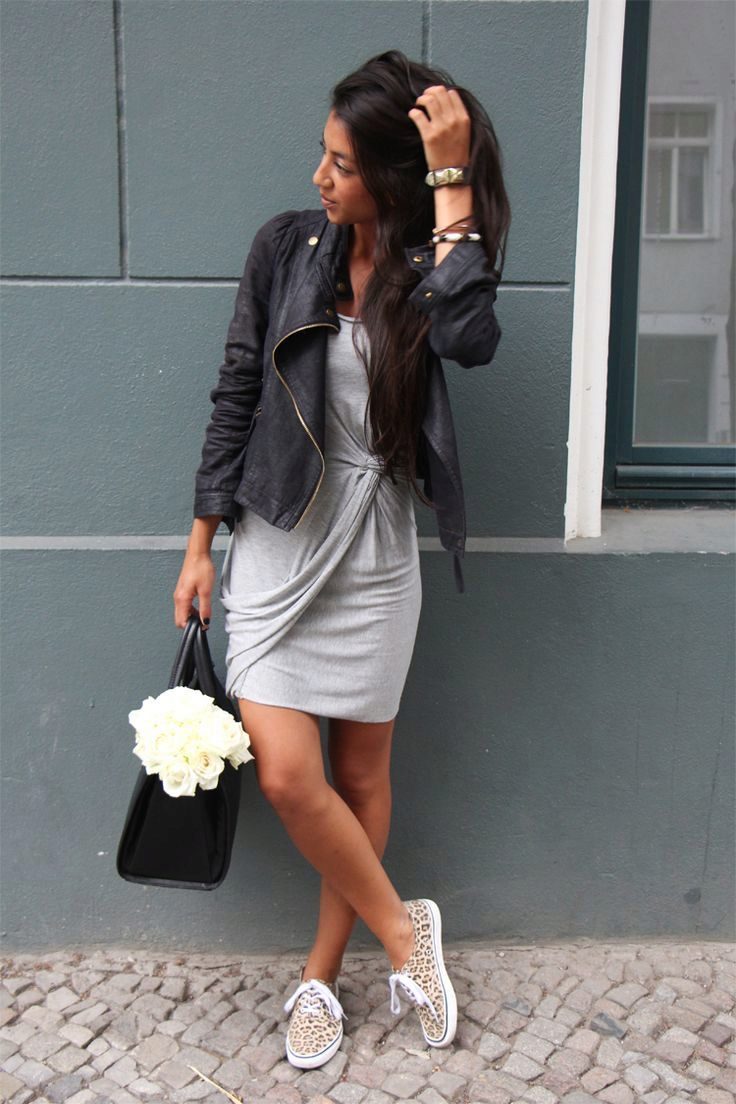 However, this comfortable shoe is not limited to a combination with trousers. A good set can come out with a dress, the main thing is to choose an outfit that does not contradict the style of slip-ons. You can wear a hooded sport dress in either military or urban style. Remember that the more romantic the clothes look, the thinner the sole of the shoe should be.