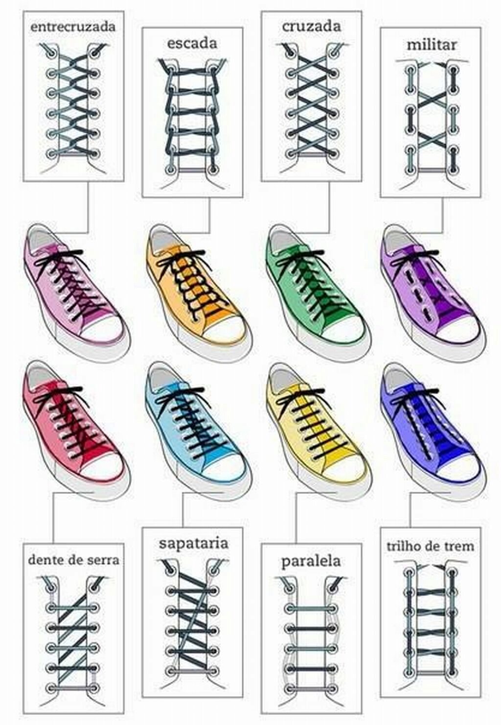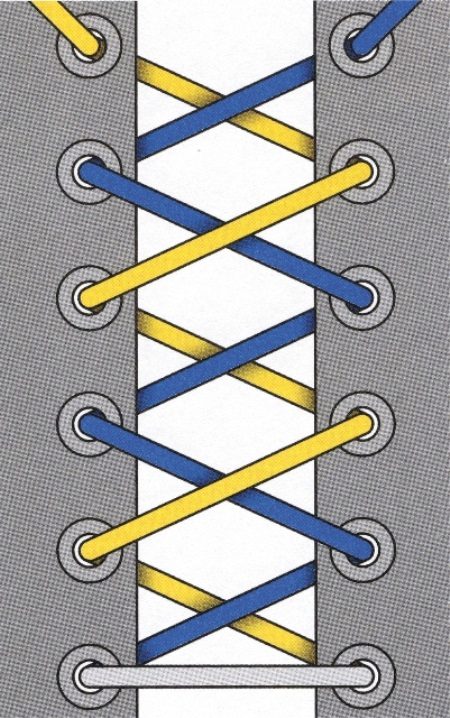 Not everyone knows that the number of types of lacing in the hundreds. The most common traditional cross method, as well as the usual straight lacing. In shoe stores, a method such as passing one tip of a lace into the top opening is common, and further manipulations take place at the other end.