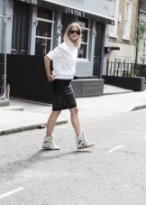 Many girls prefer urban style clothing. And here white sneakers will become irreplaceable. They can be easily combined with leggings and a stylish gradient shirt.