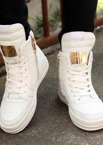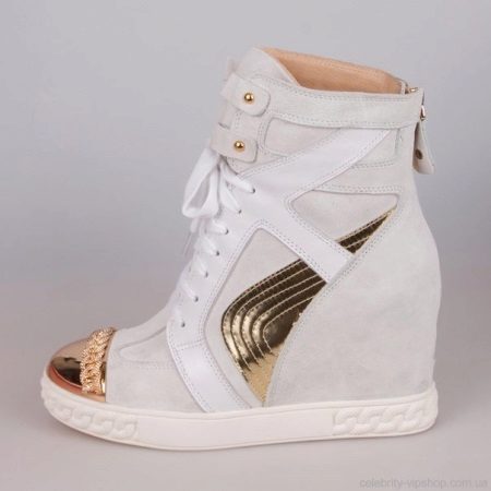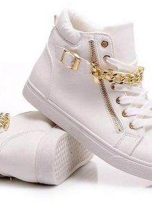 For the cold season, sneakers are presented with warm models. Quite often there are exactly sneakers of white color. They can be decorated with fur. White shoes complemented by snow-white fur look harmoniously and elegantly.