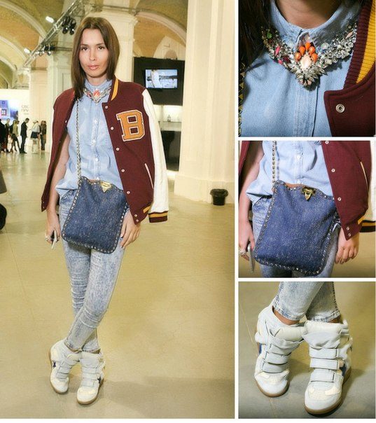 If you are a sports style lover, then white sneakers will help to add an image of elegance. They can be combined with shorts or a narrow black skirt. In this dress you can go to a meeting with friends or for a walk. In general, the combination of blue and white always looks advantageous.
