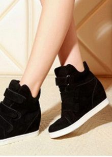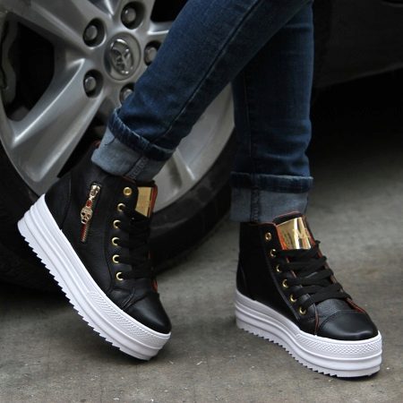 Models on a flat platform are suitable for sports. To create a stylish casual look, you should pay attention to sneakers on a wedge, which gives the shoes femininity and elegance. They allow you to visually lengthen the silhouette, to give the shape of harmony.