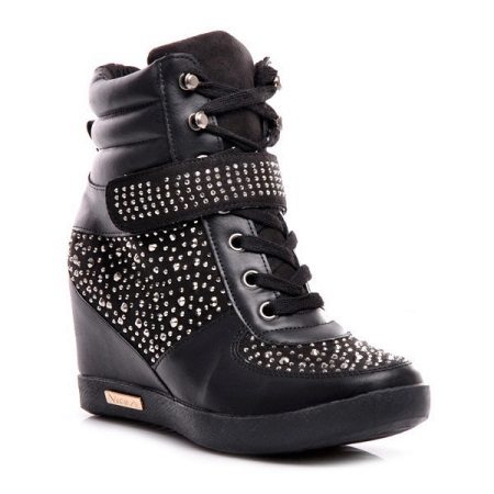 Among the various decorations, black sneakers with rhinestones look impressive and elegant. They can go to a party or a nightclub. Red-black models will be a bright accent of everyday bow, will add new colors.