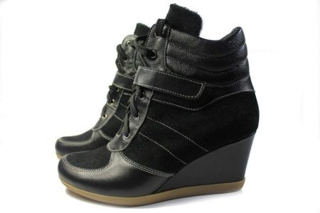 For the cold season, black sneakers with a fur lining are ideal. Natural sheepskin is very popular because it is very warm and soft. Many models have fur not only inside, but also outside for decoration. Designers offer fashionable models of black sneakers with a wide lapel of fur or a thin edge.