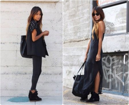 Black sneakers can be combined with different elements of wardrobe, because they are universal. They will help to create spectacular bows in street style, but they should not be combined with clothes of classical or business style.