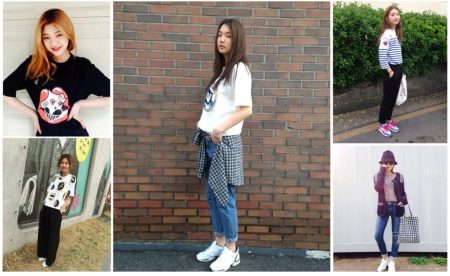 A young fashionista looks more feminine in sneakers, even if she is wearing a tracksuit. In general, this thing is uniquely successfully combined with both pants and dresses.