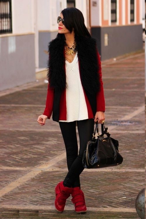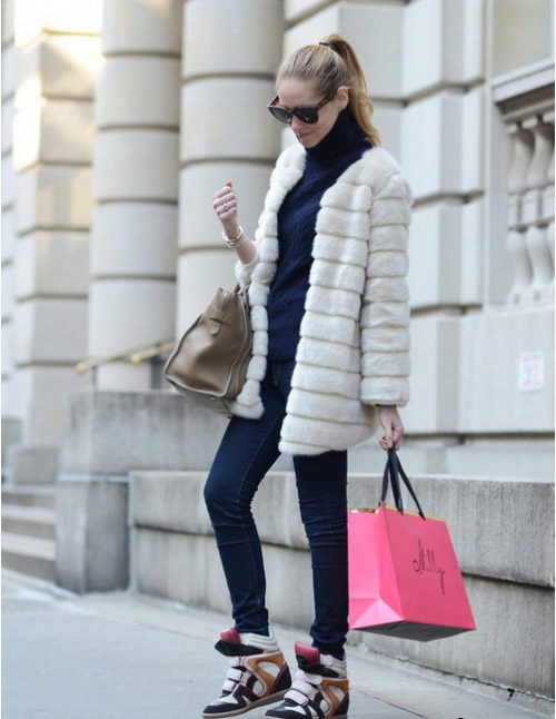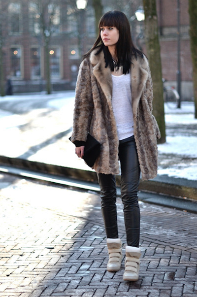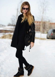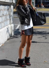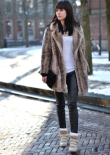 Although snickers belong to the sporty style, they are still quite interestingly combined with different fur coats, regardless of the length of the product. A fur coat can be either long, to the floor, or shortened - this is not so important, since the main condition for creating an excellent image is the color compatibility of shoes and outerwear.