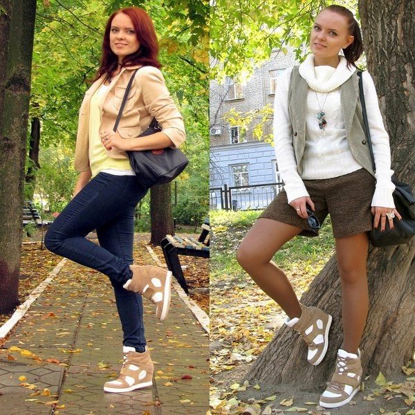 Snickers are perfectly combined with sportswear of various shades, and with light tunics, and even with some models of classic skirt outfits made of dense tweed fabric.