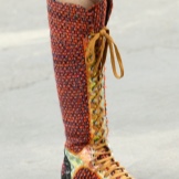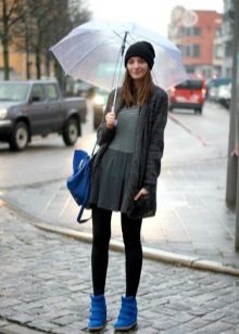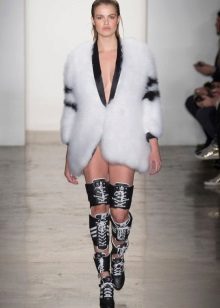 A rather bold combination is obtained with skirts of very different lengths. But to avoid the vulgar look, choose a model of free or flared cut. Lovers of experiments can try to wear such boots with a feminine delicate dress or sundress - you get a piquant and mysterious image (only the length of the clothes should not be below the knee).