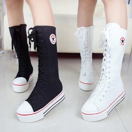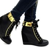 This shoe is a high-top wedge shoe. The range of such sneakers is quite diverse. In general, the model can be divided into more sporty and feminine options.
