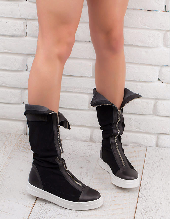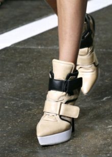 Stylish boots sneakers for different seasons look different. Models for summer and off-season, as a rule, have a wedge, flat or with a pronounced rise. Winter options are often performed on a platform with a high heel.