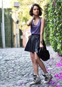 As outerwear, sneakers will perfectly complement a knitted cardigan, jacket, jacket, cropped coat. And do not forget to bring along a miniature handbag on a chain or thin strap, as an alternative can make a backpack.