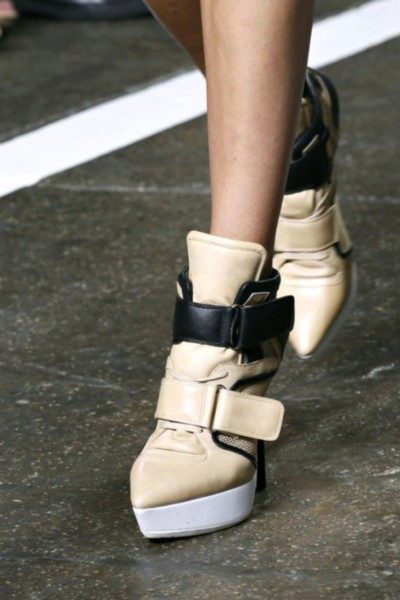 In principle, the same advice should be followed by the ladies with the hourglass figure. For girls with a shape resembling a rectangle, it is recommended to choose sneakers with a graceful platform in order not to visually weigh down the bottom.