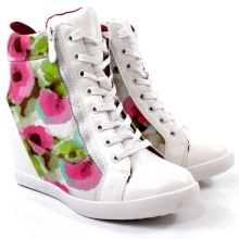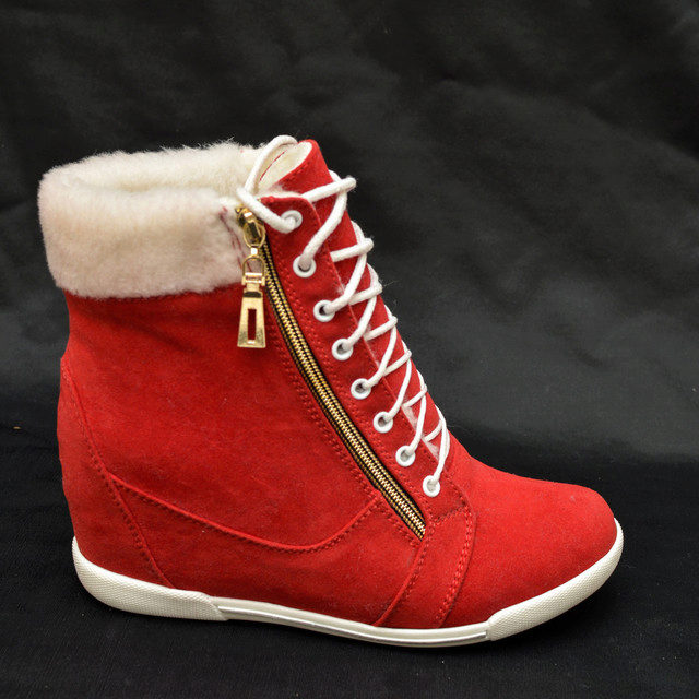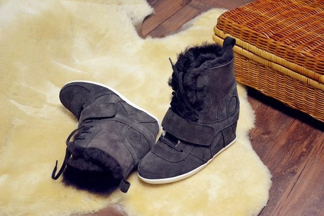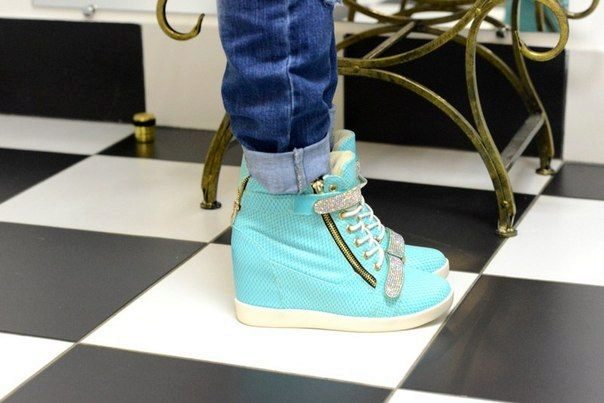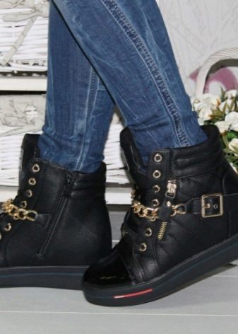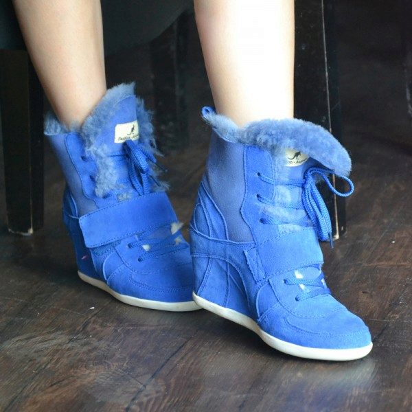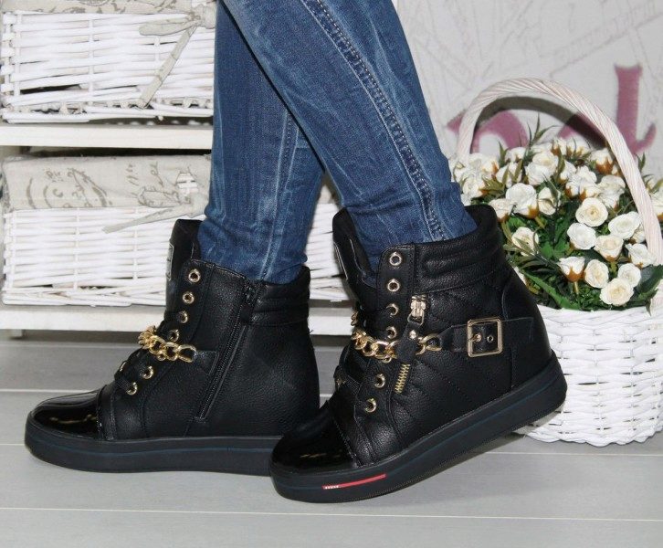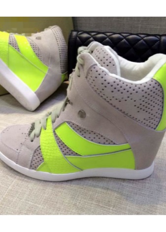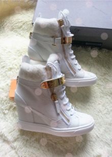 Sneakers sneakers on wedges ideal for a bright image because they can be combined with youth clothing. Models with fur trim allow you to create an unforgettable thematic image.