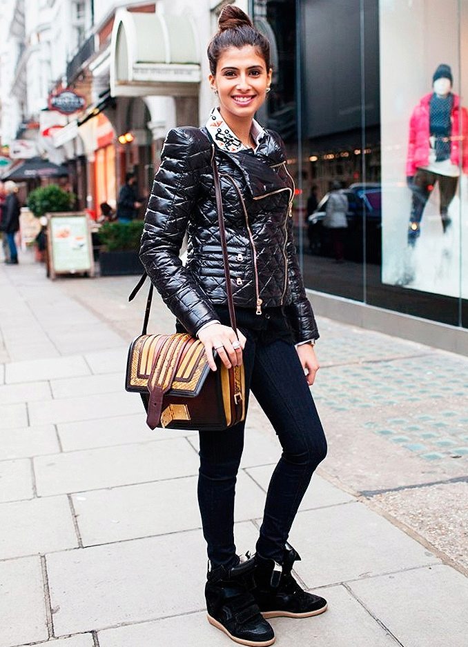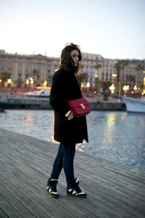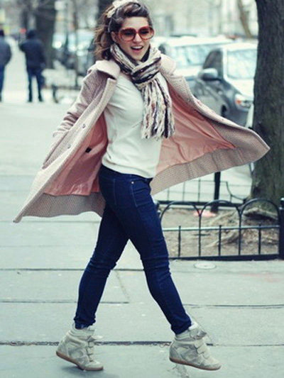 For urban style the perfect solution would be sneakers on wedges. They visually lengthen the silhouette, give the image of unusual and brightness.