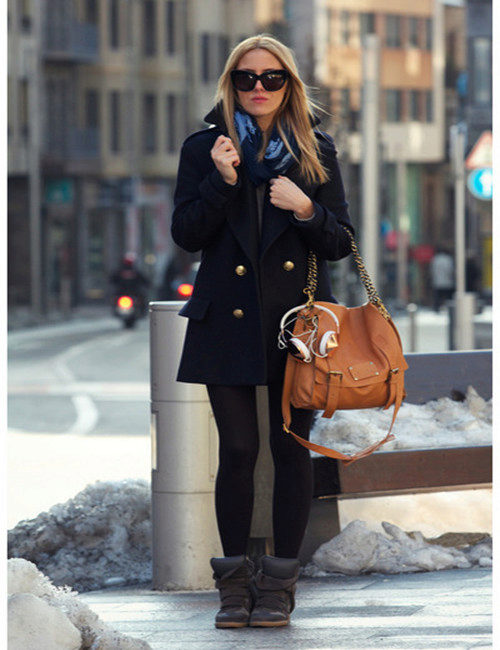 A light coat of a neat cut over a white sweater in a tandem with blue jeans and a tight fit will look great in an ensemble with white sneakers. A massive scarf and sunglasses help you to complete the look.