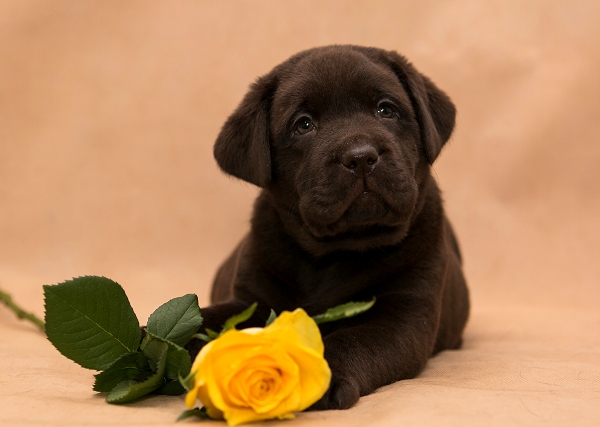 - Labrador puppy is required to choose the hanging ears, short, but dense coat and fatness;