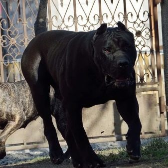 Very carefully you need to acquaint the bandog with other dogs. Any will be perceived as a competitor. He will not tolerate incursions into his own possessions, loyally applies only to those dogs with whom he grew up and was brought up in the same space. The same applies to the relationship to other animals, including cats. Any new pet that tries to walk around the gang court can suffer if he doesn't know it.