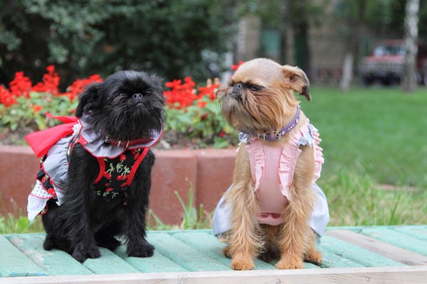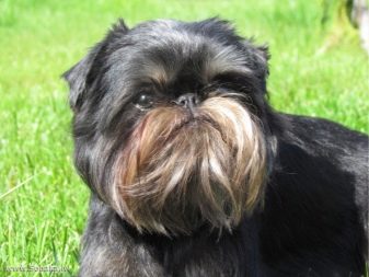 The Belgian griffon is a funny little animal that has a bald head and a shaggy beard. The maximum height of the mini dogs is 35 cm, and the weight is 6 kg. Individuals of the female and male sex have no pronounced external differences. The body of animals has a square shape, a strong bone skeleton and a deep chest with solid ribs, as well as a tucked up belly. The skull has a round shape and a rounded forehead area. On a flat face there is a wide jaw with fine teeth and a protruding lower jaw. Tightly closed mouth is framed by black lips.