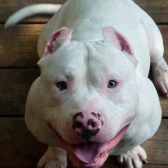Strong and hardy American pit bull terriers (pit bulls) have long won the love and respect of breeders around the world. Having an awesome appearance, pets are excellent guards and loyal friends. There are pit bulls brindle, spotted and monochromatic colors. Of particular interest breeders won the pit bulls with white wool.