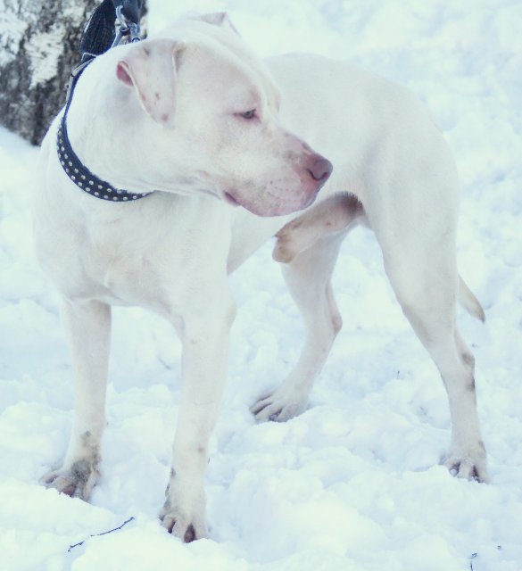 Consider the features of white-fur pit bulls.