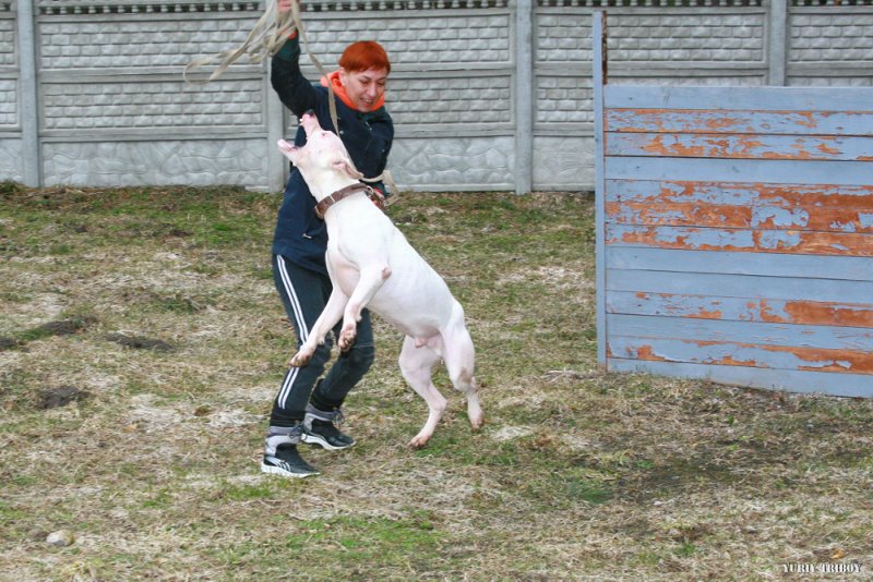 As they grow older, the dog is trained to muzzle. This is a necessary "accessory" for representatives of this breed. For wool white color requires careful care. After each walk pet can be cleaned with a damp towel. Bathe the dog as it is polluted (no more than three times a year). With frequent washing with special means from the skin of the dog "leaves" a protective layer. It is also important to monitor the condition of the ears, eyes and pit bull teeth.