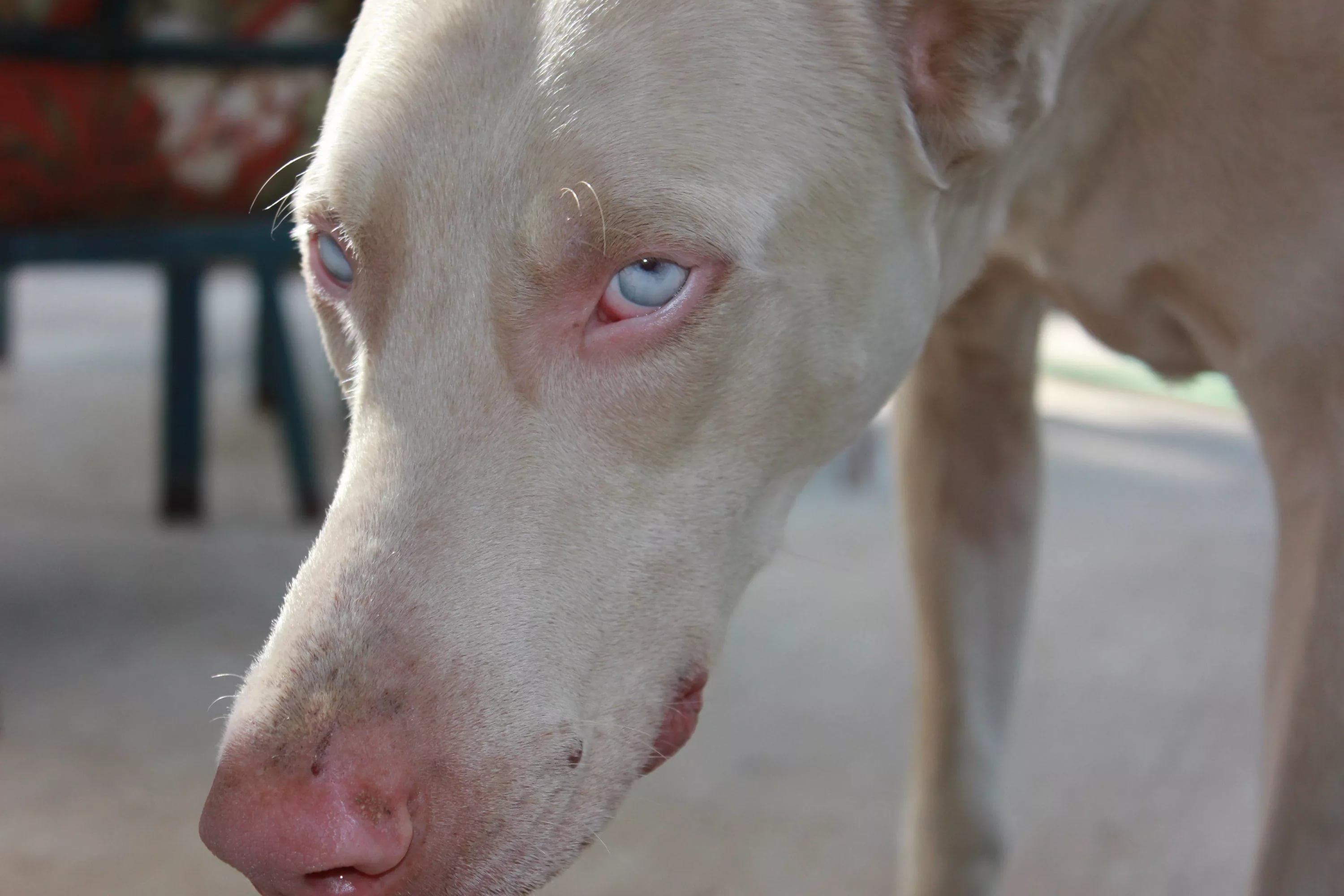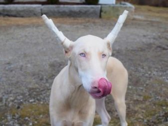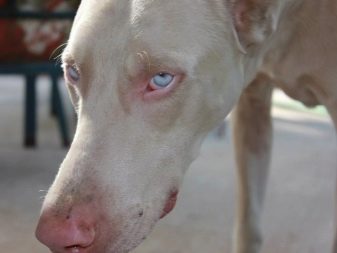White coat consists of short and coarse hair without undercoat. Features of albinos - the presence of blue eyes and light colored nose. These individuals are not used for breeding, and do not participate in exhibitions and competitions.