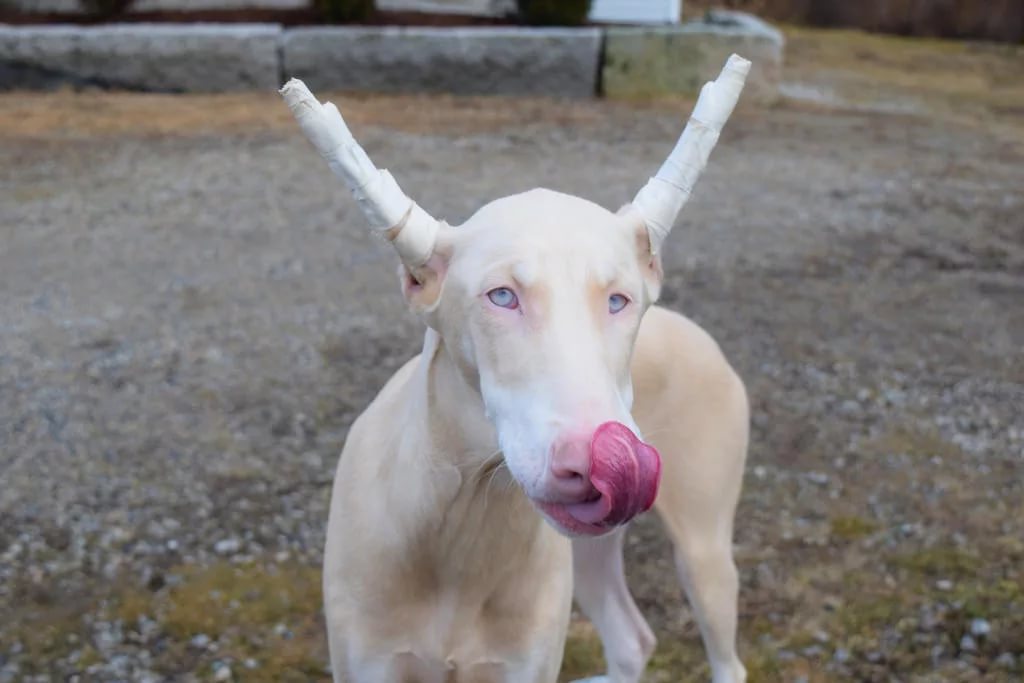 Look closer at the white Doberman you can further.