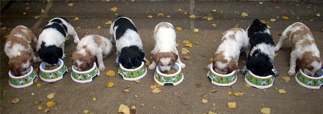 It is necessary to provide Breton twice daily meals with protein-containing feeds, portions of the recommended amount of feed should be unequal, for puppies it is especially important to get protein in the feed.