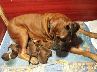 The number of babies in the litter will increase by the age of the female at 3-4 years, after which it will decrease again. Determining that a dog is pregnant is not always easy. The fact that the female bears puppies will become noticeable not by her appearance, but by her behavior. The animal behaves calmer, more tender, demanding a good attitude and attention to itself. It may even seem that Boerboel is not quite healthy.