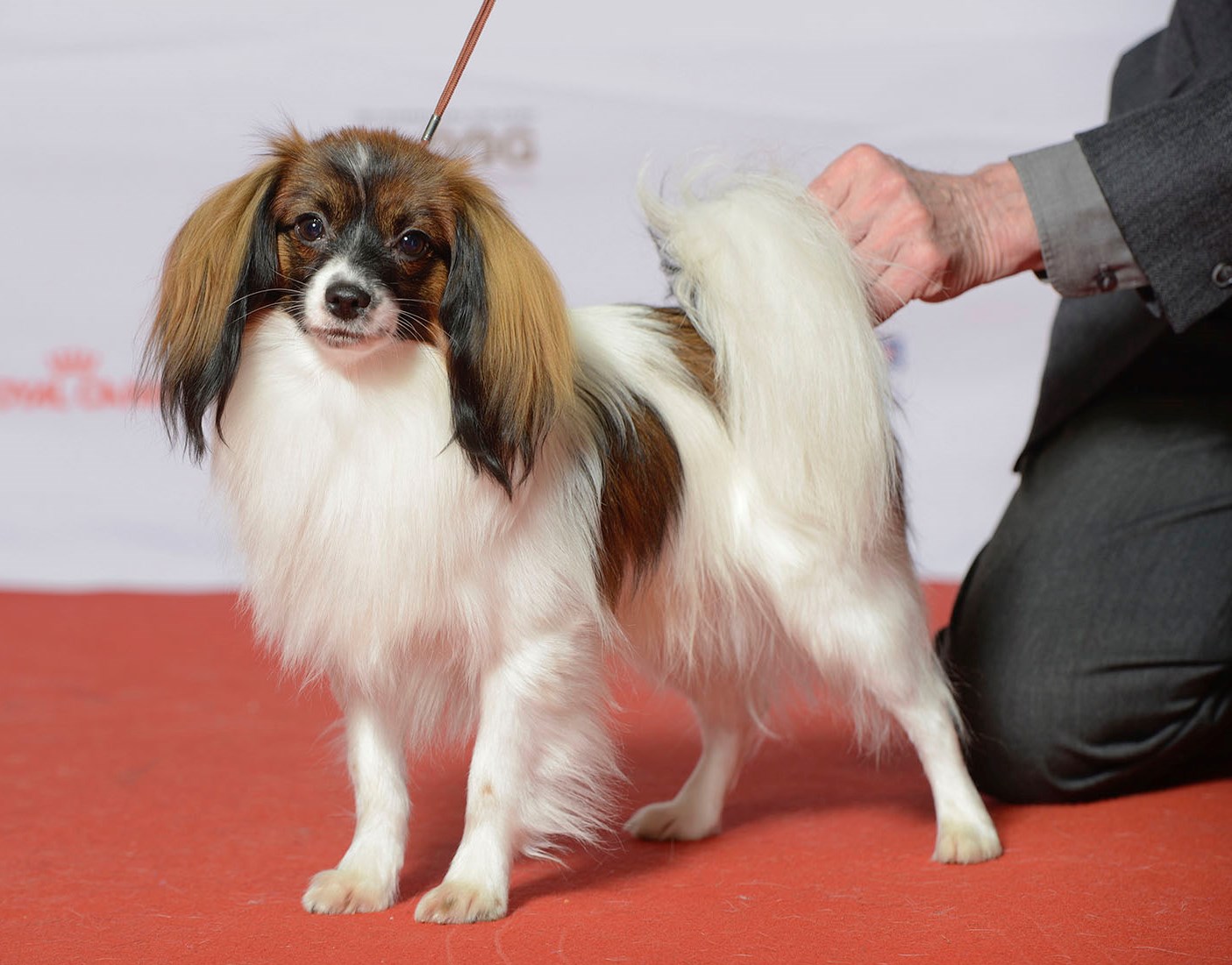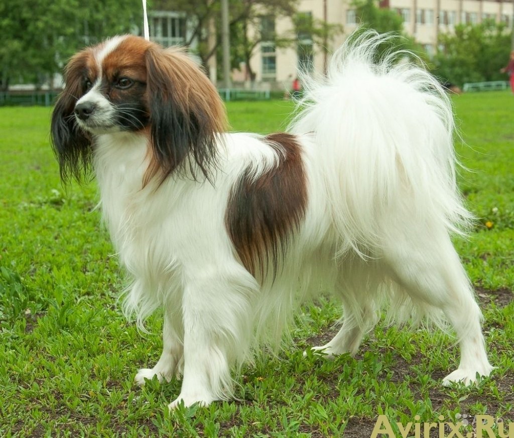 - Phalenes have a long, highly set tail, its dimensions allow the tip to lie on its back. As a rule, its length does not exceed 15 centimeters, it has long hair.