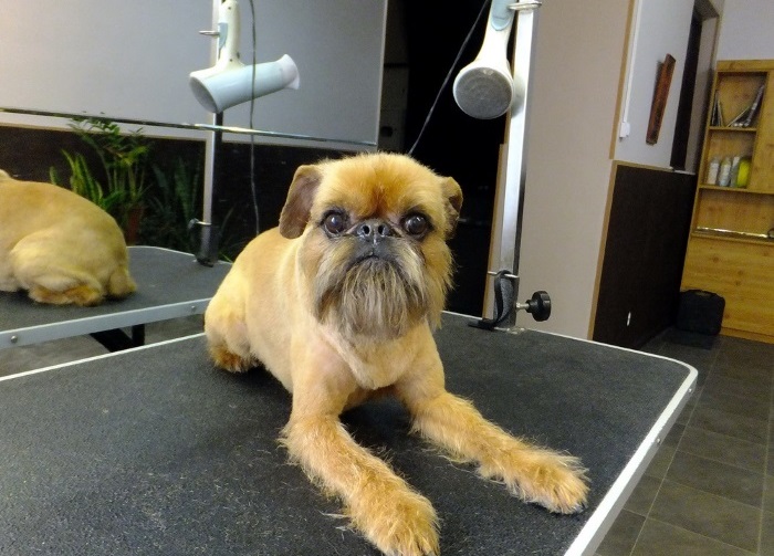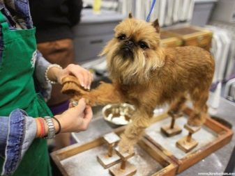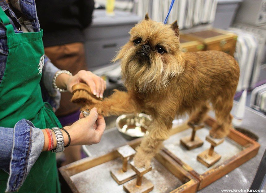 - A haircut. In general, too long hair is not typical for griffons, however, in places such as the abdomen, chest, chin, anus and limbs, the hair is often longer than usual. Excessive wool in these places can not only bring discomfort to the animal itself (hamper movement, interfere with bowel movements), but also add care to owners who are obliged to clean and wash it regularly. Despite this, a thorough grooming of griffons at home is not recommended - for this, dogs are sent to grooming salons to create decorative hairstyles and bring wool into a neat and well-groomed look.