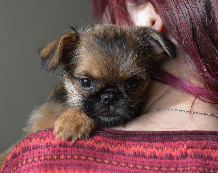 - Socialization. The main condition in the content of griffons is to ensure constant contact with people. These dogs are not able to be locked up in four walls for a long time. When the owner comes home, they will constantly follow him and hint at games and affection. That is why these pets are not recommended to start the owners with a clearly limited schedule and a small amount of free time.