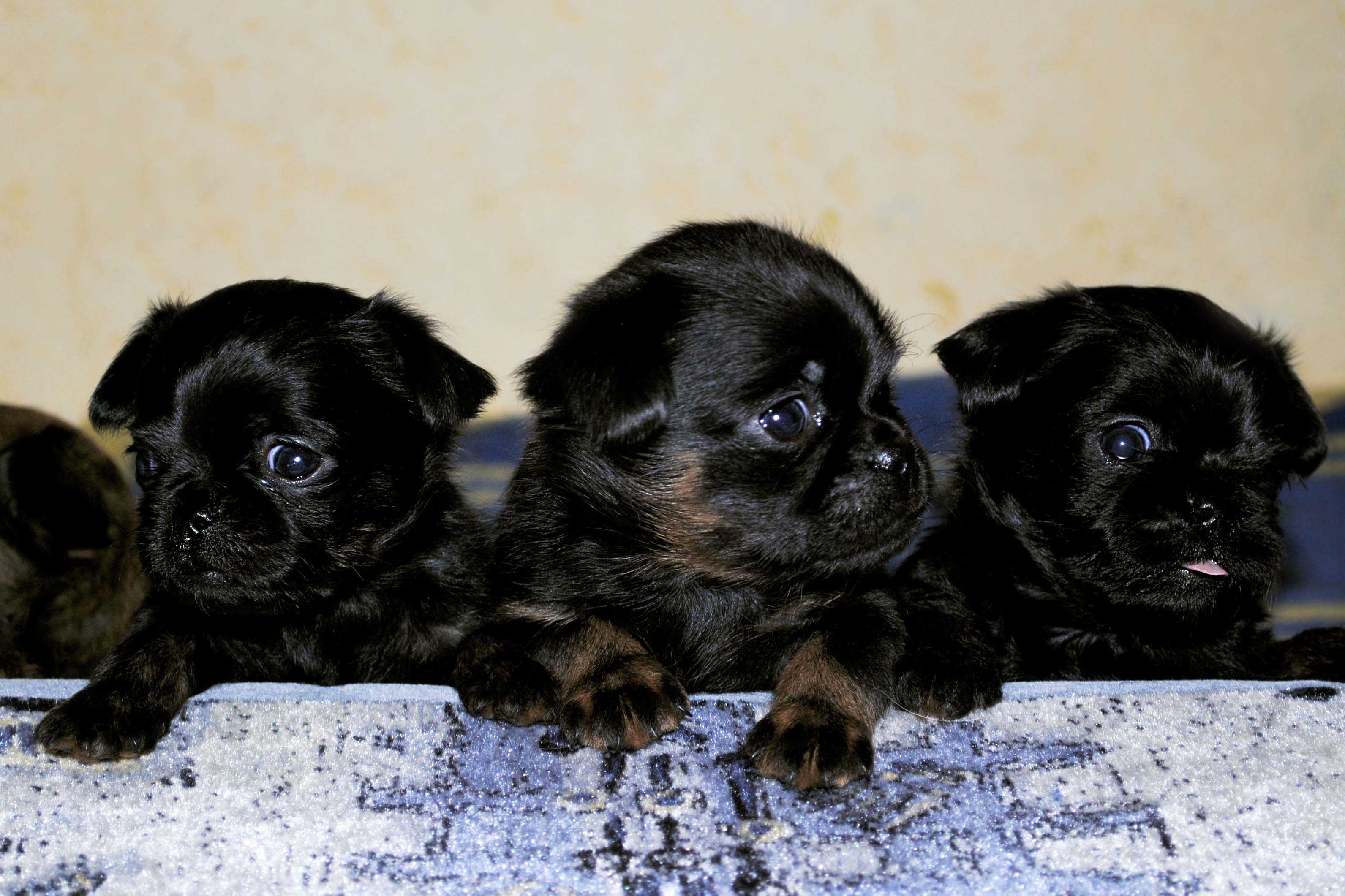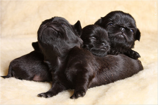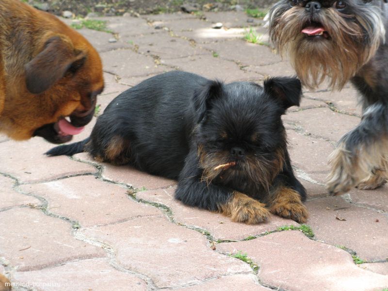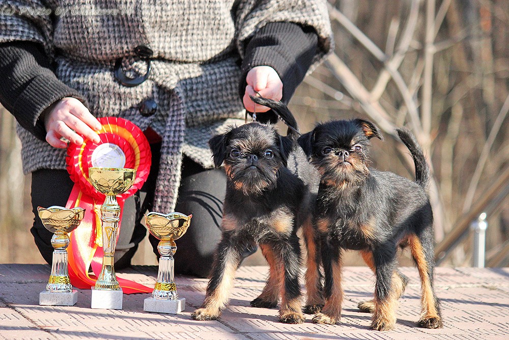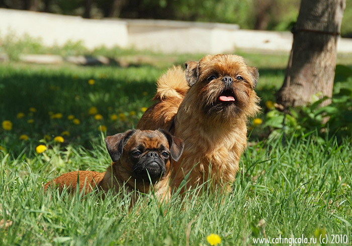 No one knows exactly which breeds became the first ancestors of the griffons - most likely, during these 500 years not less than a dozen different breeds with different external characteristics and qualities participated in the selection. The closest relative of griffons from modern breeds of dogs is considered to be an affincher, a toy terrier and a pekinese. These dogs are similar in appearance, however they differ in different character traits. In addition, recently it became known that affenpinchers appeared much later than griffons.
