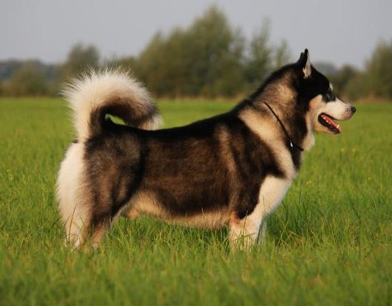 - The next type is “ring”. Fully bent and lies on the back of the dog. Most often, the northern breeds such as hunting and riding, such as Siberian huskies, Huskies, Alaskan Malamutes, have such a tail. Surprisingly, these species are the closest descendants of wolves, whose tail has the shape of a log.