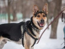 - with medium parameters, the width of the chest is the same as the pelvis, or slightly wider, the overall harmony of the body and different types of hair (short and long), the animal most likely belongs to different service dogs, and the list is quite large;