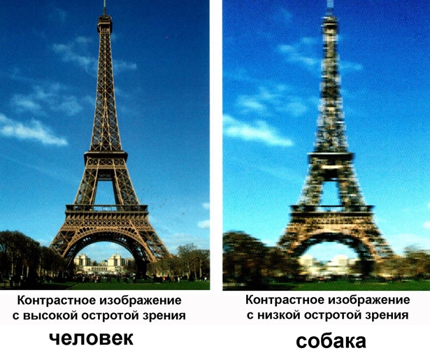 These are the main criteria that distinguish our vision from the dog. Such differences are caused primarily by the purpose of the organ of vision, which for us and for them has different meanings.