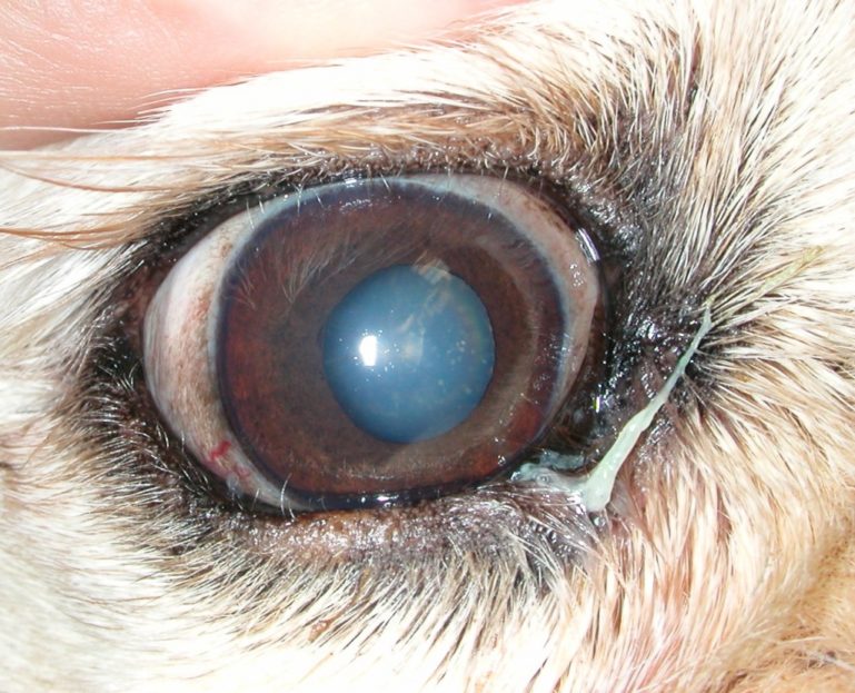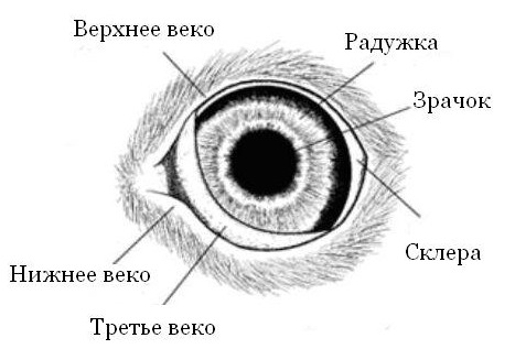 So, the eye of a quadruped has an additional outer shell called the third eyelid.. It is a thin film that envelops the eye. It protects it from dust and dust. And constantly moisturizes, thanks to the lacrimal gland.