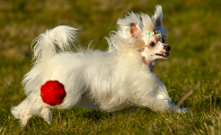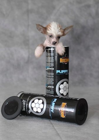 Depending on the volume of wool on its body, the Chinese crested dog is divided into bare and downy. Especially active and friendly are considered powder - puffs - downy pets. They are representatives of the animal world that are demanding to care, but very attached to the family.