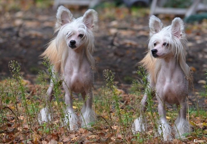 Chinese crested animals also belong to larger dog breeds. These animals have a very unusual appearance that attracts the attention of many. The skin of the animal is smooth, but in some areas there is a long coat, mainly on the forehead, legs and tail.