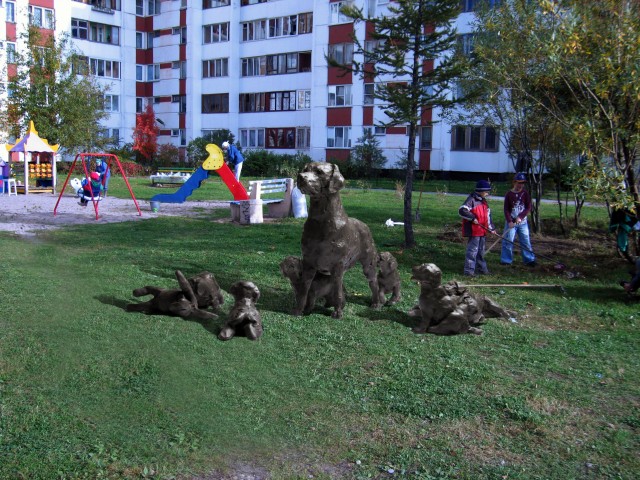 During the life in St. Petersburg, Labrador Connie erected a monument on the playground, and residents of nearby houses believe that thanks to this monument it will be possible to preserve good and order in the neighborhood.