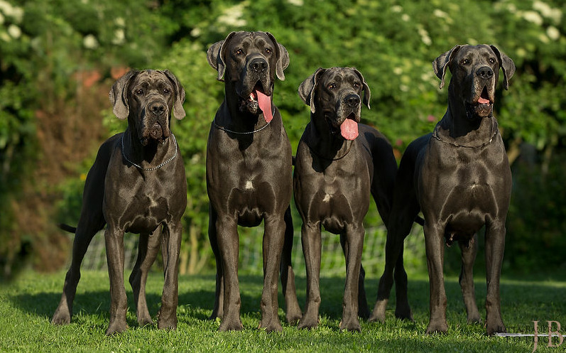 - German dog. Leisurely giants have a phlegmatic character, not averse to lying on the sofa, sharing the evening with the host by the fireplace. As a companion, they demonstrate loyalty and dedication, ready to protect the owner in a critical situation. With proper upbringing, neither at home nor on a walk will the dog be troublesome.