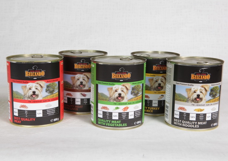 - Belcando canned food for puppies. It is a holistic product class, cooked in meat broth and contains pieces of chicken fillet, as well as chicken by-products and whole chicken eggs. The food is intended for puppies and is enriched with vitamins D, E, and also contains thistle oil and chia seeds.