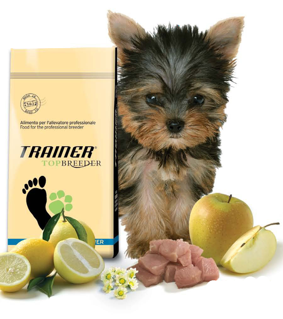 - Dry Trainer Feed have a super premium product line designed for puppies from 1 to 10 months of age. The product includes natural turkey or chicken meat, as well as fish, pork, fruits and vegetables. The composition is fully balanced in terms of the ratio of vitamins and trace elements, allowing the puppy to grow and develop quickly.